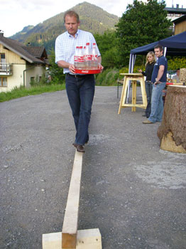 ![]() ...5m Balken, hin und retour mit einem Tablett voll Coca Cola Flaschen...